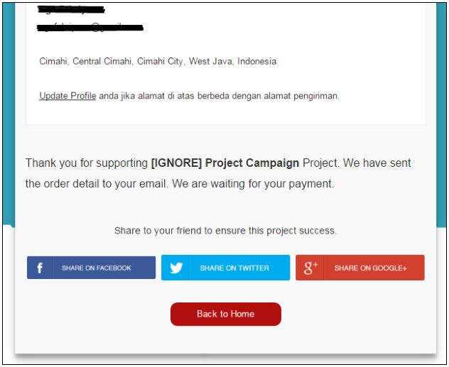 Misalkan anda memilih pada Reward 2 dengan nominal Donasi Rp. 50.000.